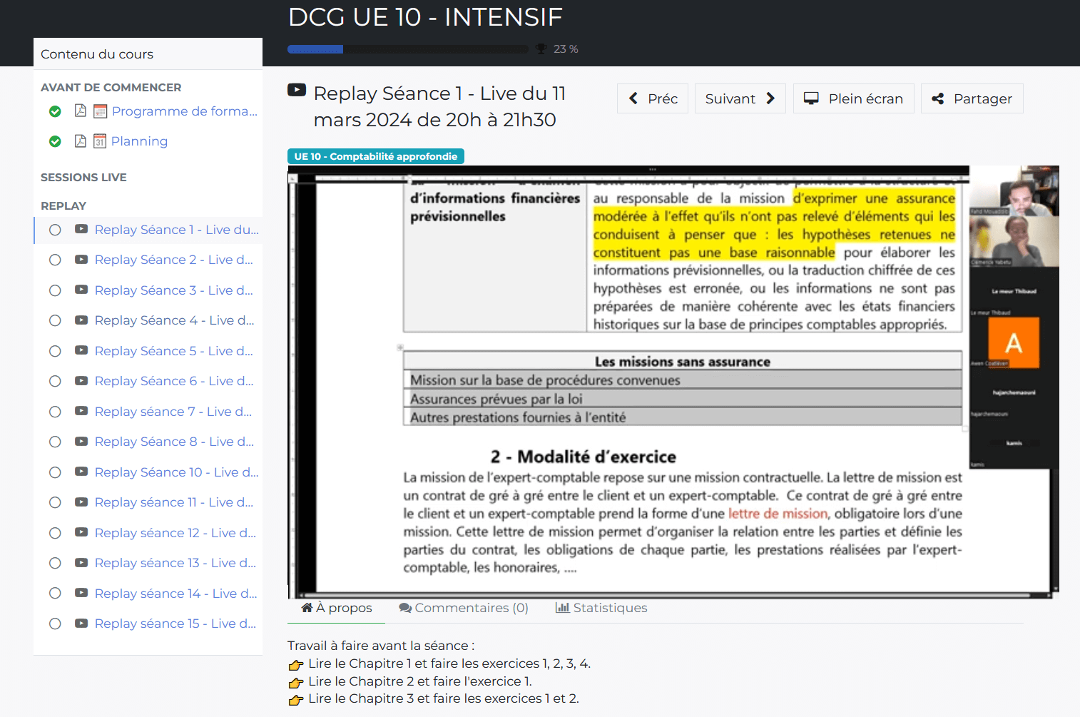 revue de l'intégralité du programme à partir de fin mars 2026 (séance de 1 à 2 heures, soir et week-end sur Zoom).